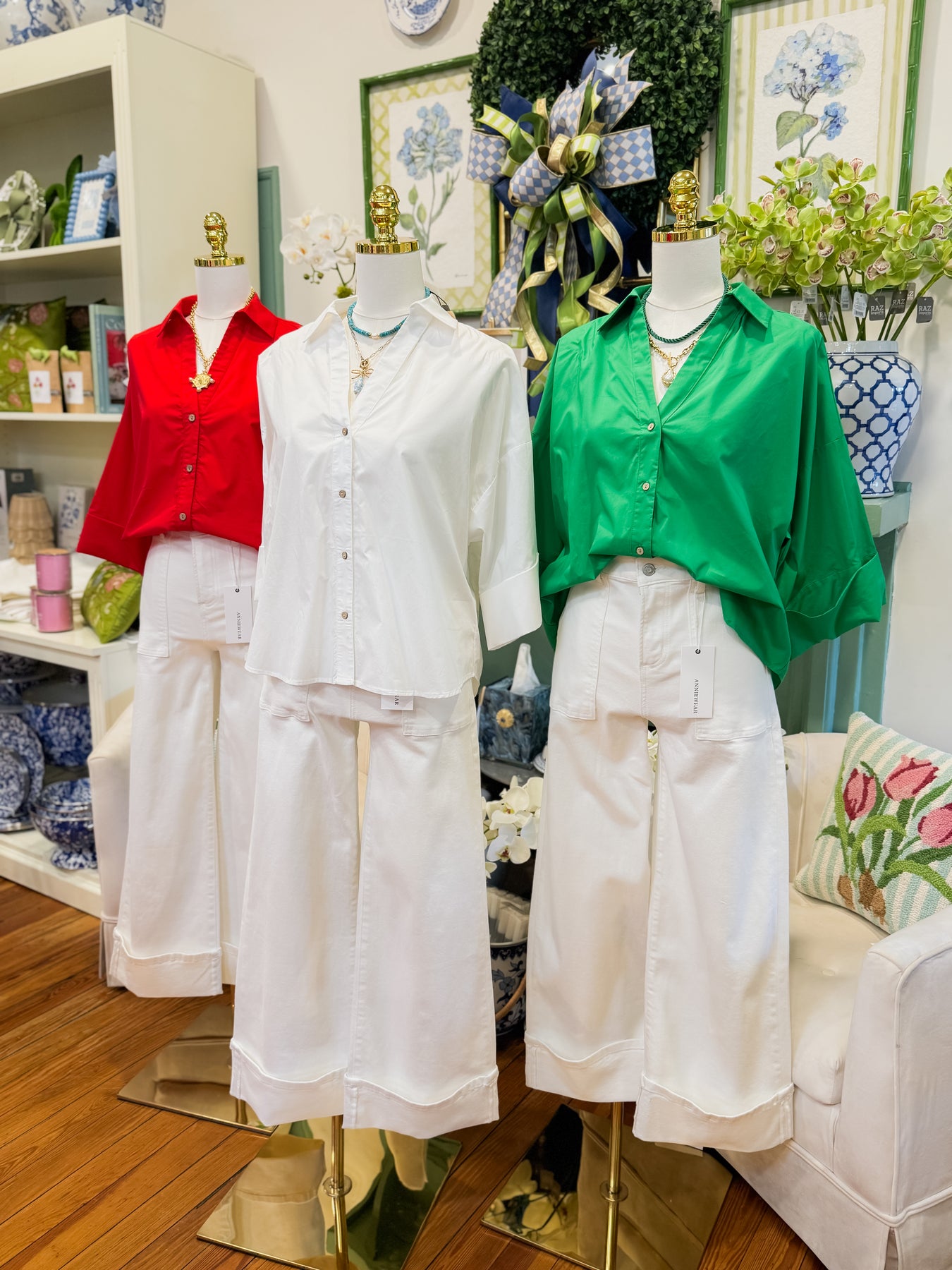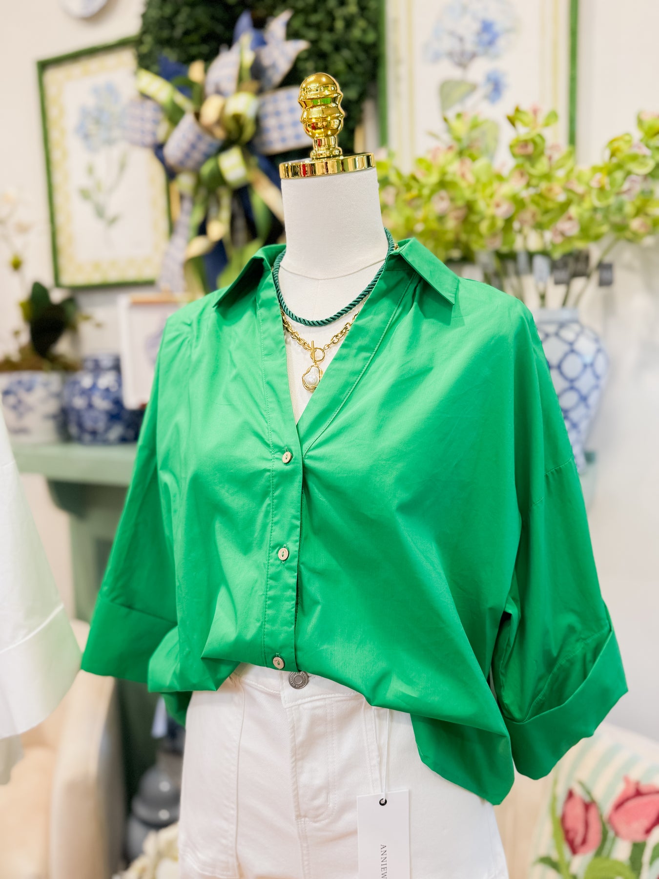 Slip into comfort and style with The Work Top in Kelly Green—your new go-to for looking polished without the fuss. Whether you're heading to the office, running errands, or just living your best casual life, this versatile piece works hard so you don't have to. The rich kelly green hue pairs effortlessly with everything in your closet, making it the ultimate wardrobe MVP. Dress it up or down, layer it through the seasons, and enjoy a top that's as ready for anything as you are.