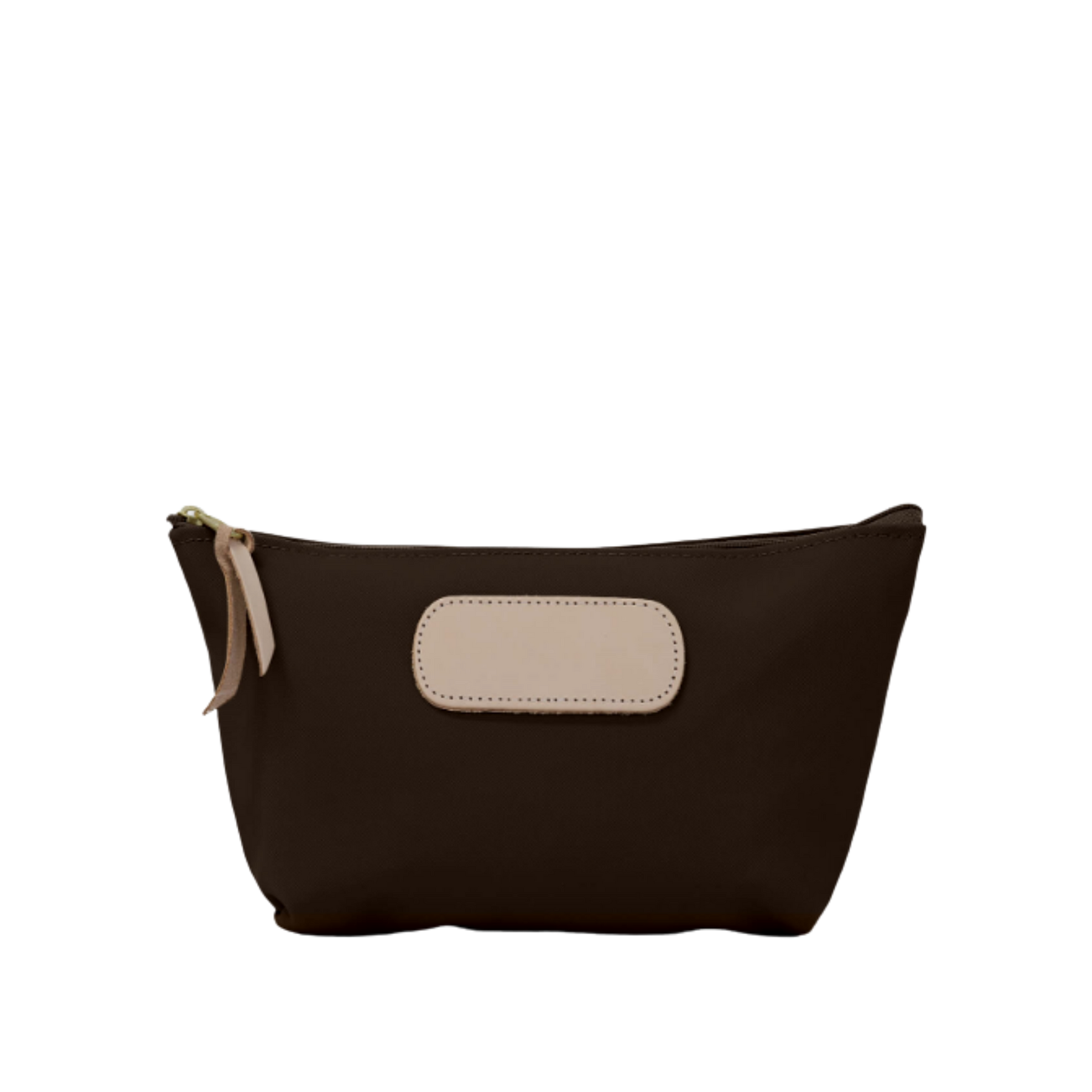 Fully zippered closure with brass hardware