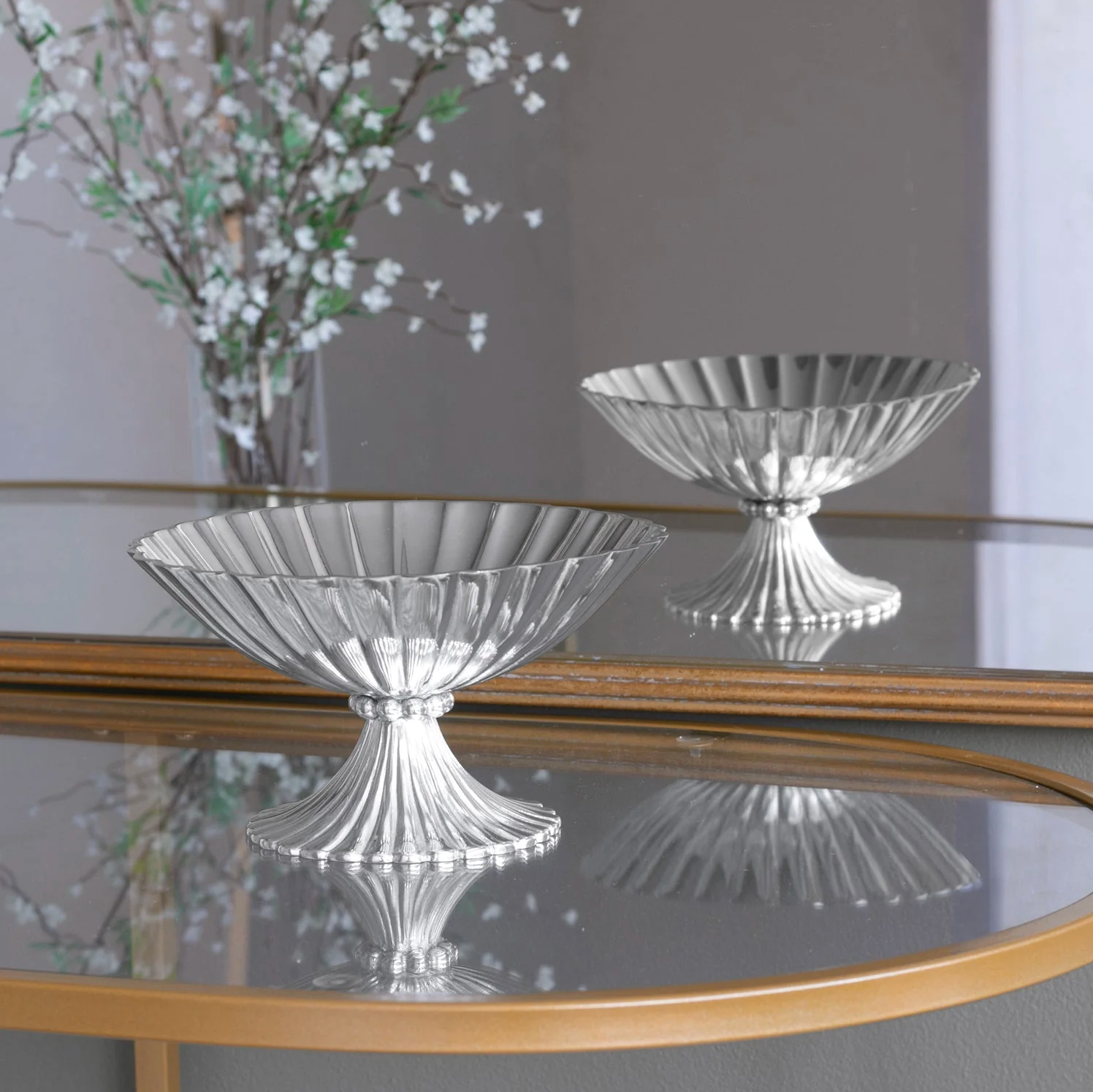 With beautifully fluted surfaces and pearl-inspired detailing, this elevated design serves just as gracefully at a holiday gathering as it does at a summer garden party. Use it to present cakes, desserts, or savory bites, or style it with flowers for a striking centerpiece.
