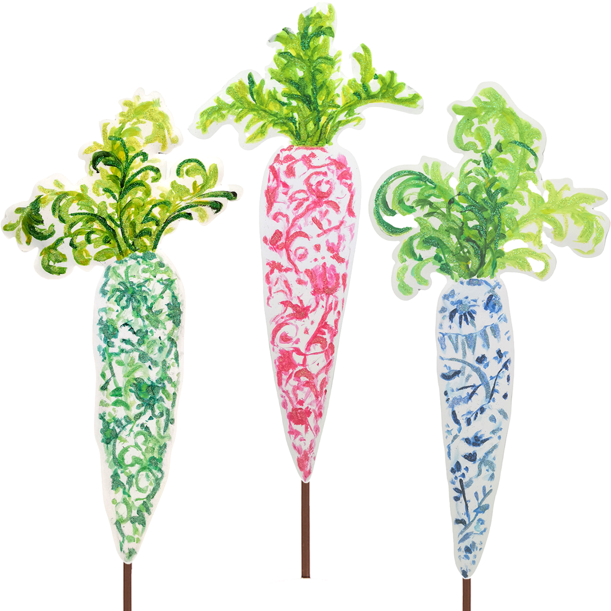 Chinoiserie Carrots Plant Stakes, Set of 3