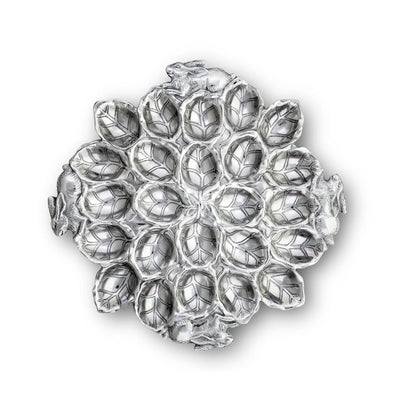 Detailed rabbits sit prominently on opposite ends of this piece, while veins flow through the leafy-patterned interior and along the edges. Handcrafted in sand-cast aluminum, this holder's rustic design gleams brilliantly against bright colors. Holds 12 deviled eggs