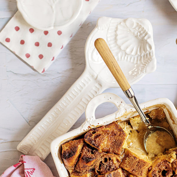 A festive friend to the Pietra Serena collection, Pietra Natale shares Pietra Serena’s handpressed edges, and it adds its own spirit with its jolly, joyful depictions of Babbo Natale, Italy’s Santa Claus. Brimming with charming details, the Pietra Natale Spoonrest is sure to bring delight to your holiday table for years and years to come.